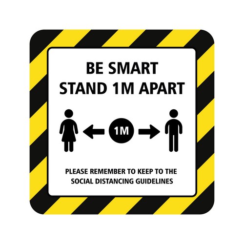 HomeSafety Stickerss Square Be Smart Stand 1m Apart